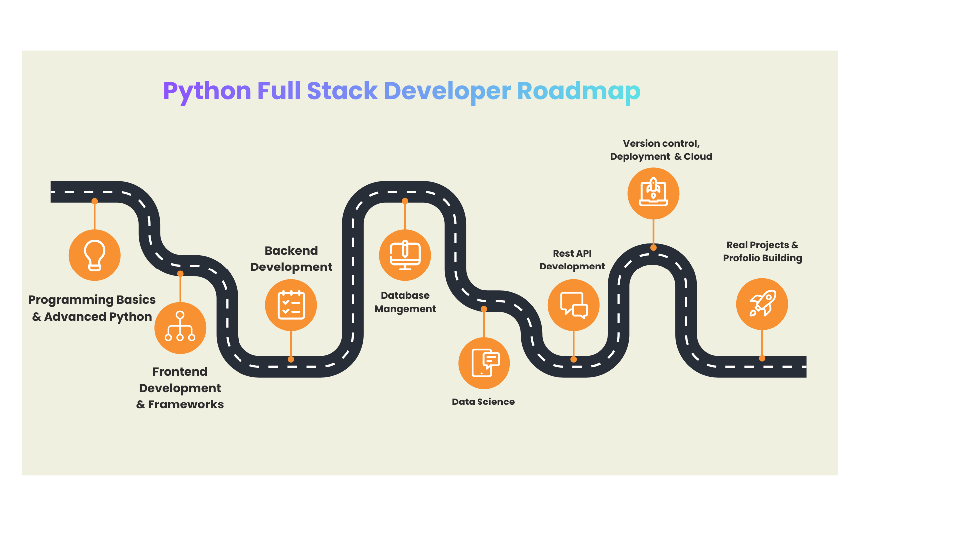 Looking for best Python Full Stack Training Our certification program covers frontend, backend, databases, APIs, and deployment using Python, Django, React, Flask, Angular, MongoDB, PostgreSQL and more. With 120+ hours of expert-led sessions, real-time projects, flexible online batches, and 100% placement assistance, we prepare you for a successful career as a Full Stack Developer